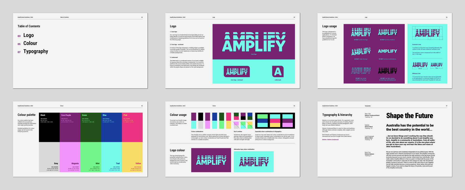 Amplify is a bold initiative challenging Australia's political divide. I collaborated with Colenso BBDO to craft the brand’s visual identity and implement the rollout.